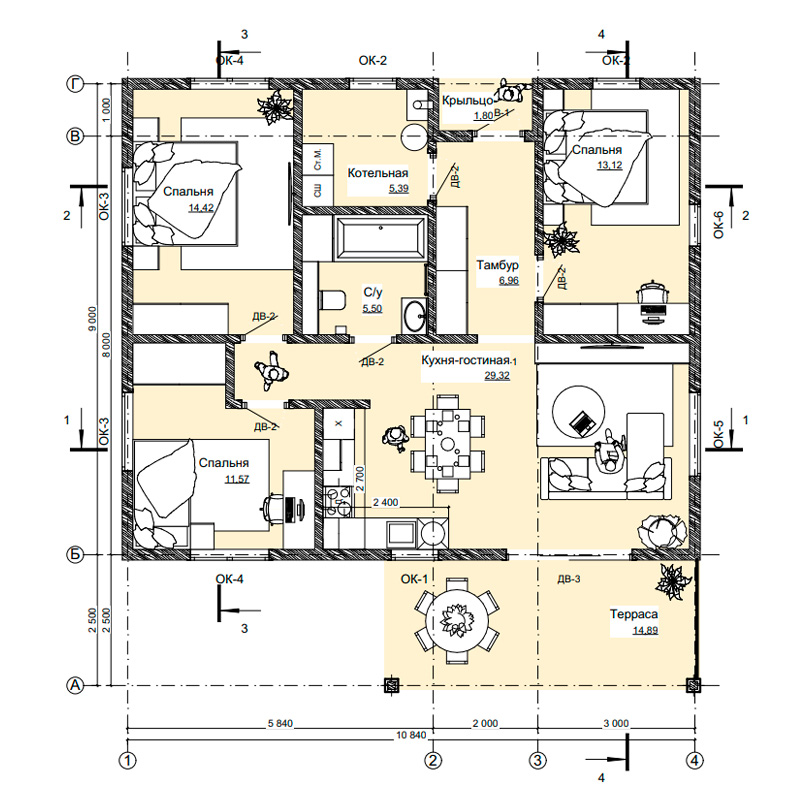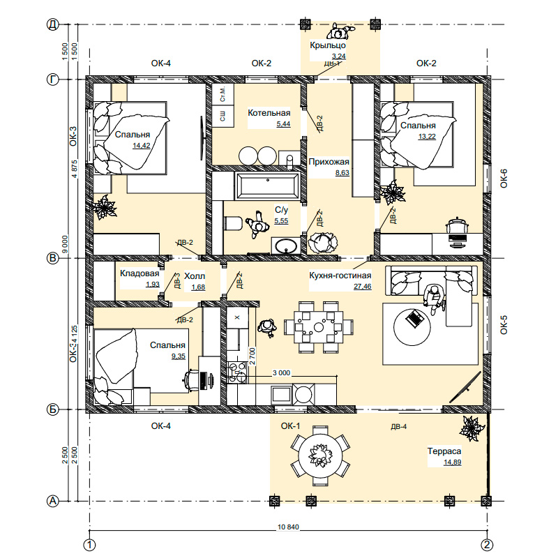 | Терраса | 14,89 м2 |